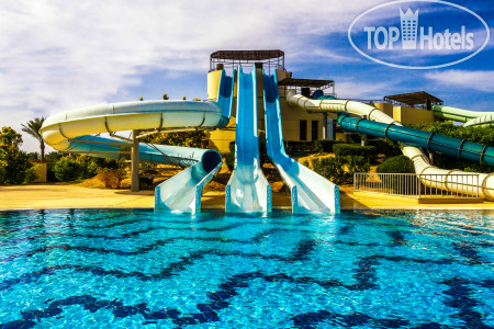 Также есть аква парк с горками, для детей и взрослых самое то. Отель находится в Бухте Корая, нет ветра, только иногда волны, вокруг все отели Джаз, территория большая, есть где прогуляться.